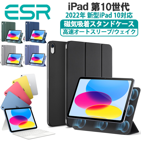 ESR iPadケース iPad 第10世代(2022) 磁気吸着 マグネットケース オートスリープ/ウェイク Pencil 2対応 ワイヤレス充電 レビュー投稿 100日保証