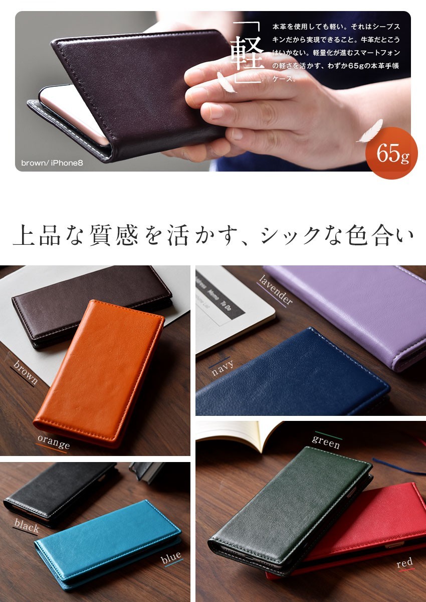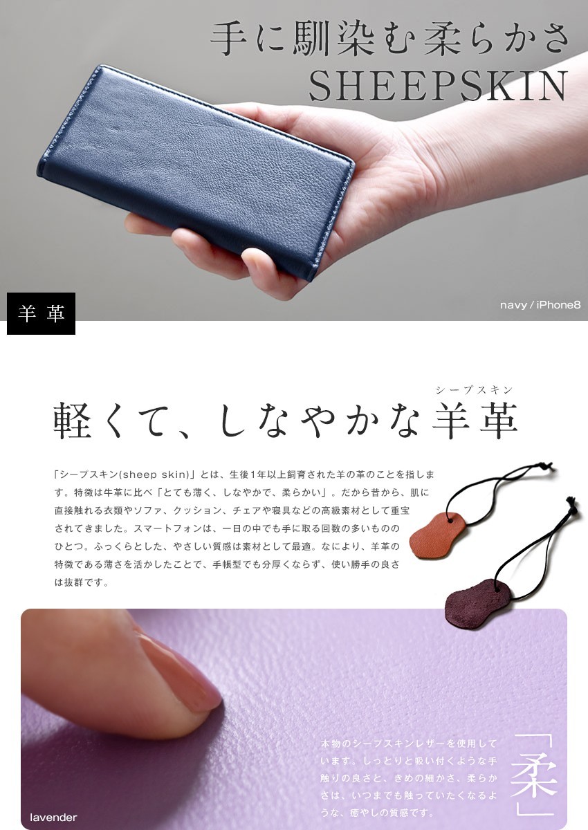 羊革(シープスキン) 本革手帳型スマホケース
