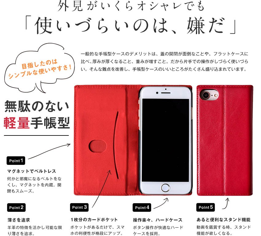 なにより、羊革の特徴である薄さを活かしたことで、手帳型でも分厚くならず、使い勝手の良さは抜群です。