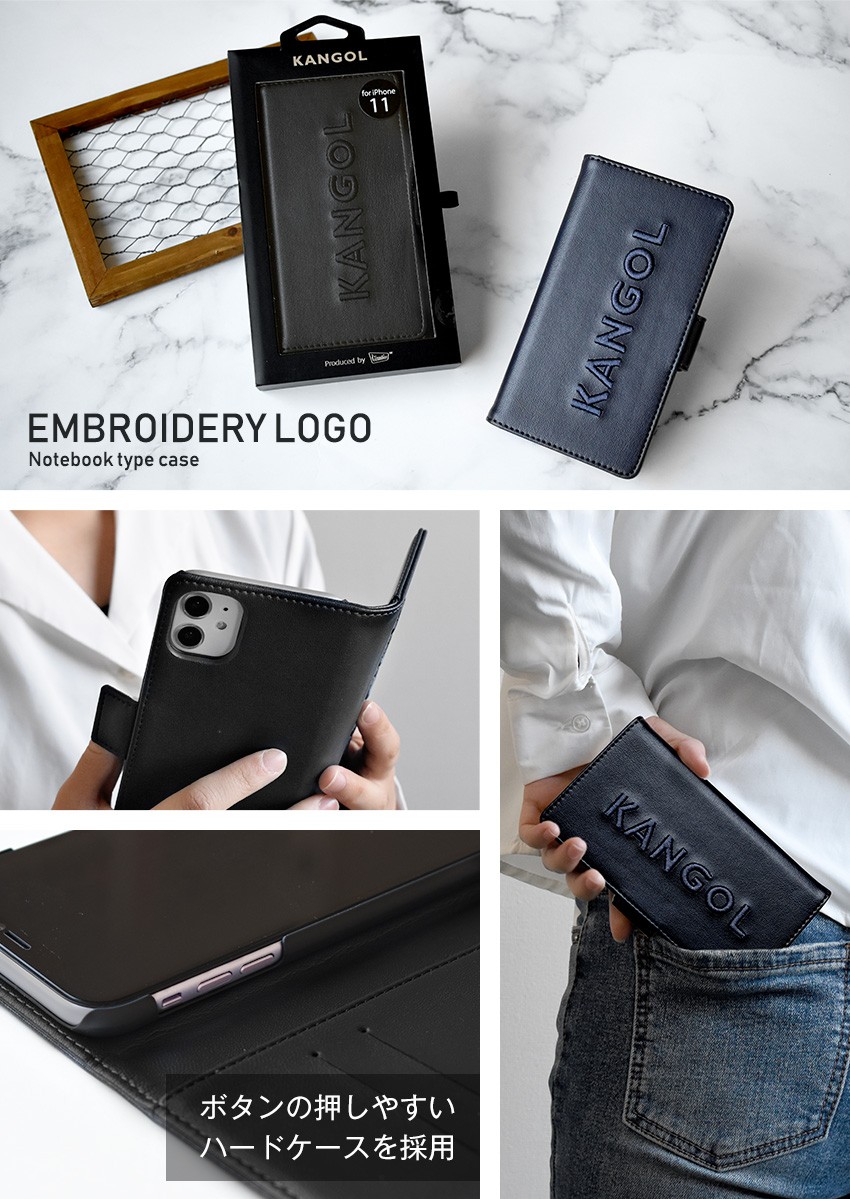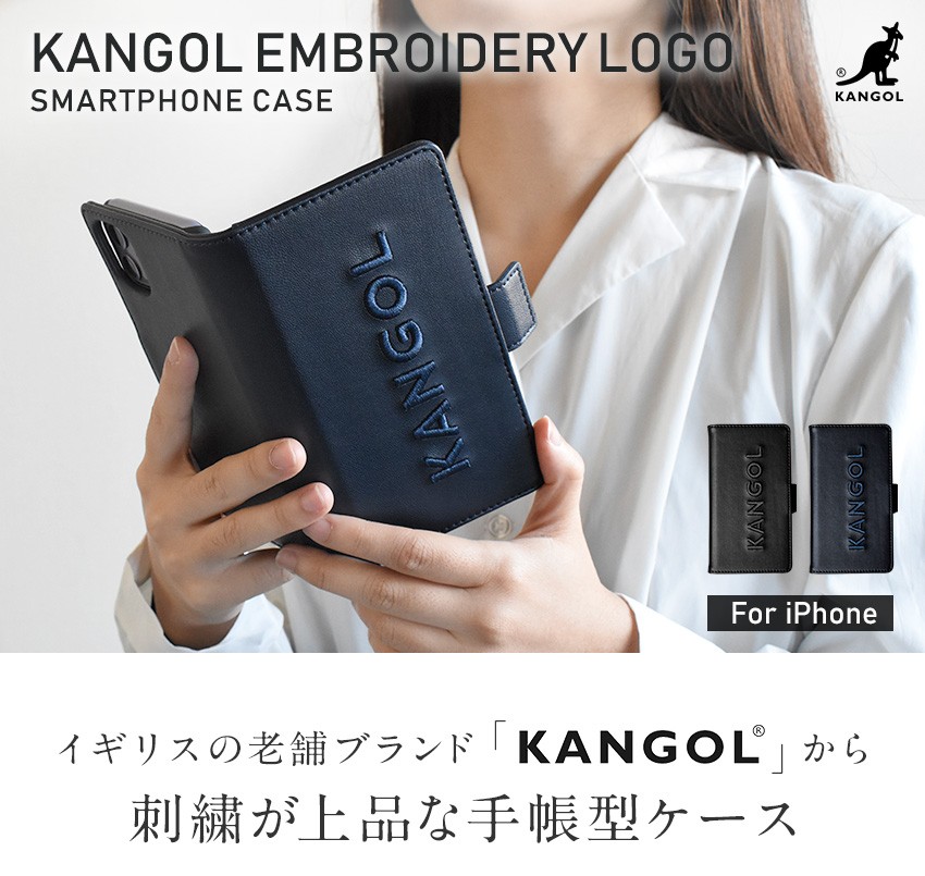 KANGOL 刺繍ロゴ 手帳型スマホケース