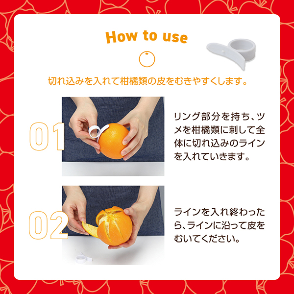 柑橘類の皮がキレイにむける皮むきリング付属。