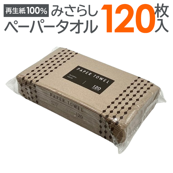 ペーパータオル 120枚 無漂白 使い捨て 茶色 ハンドタオル 手拭き キッチンペーパー 再生紙 紙タオル 未晒し 掃除 消毒 120枚入 台所 /60N◇ 120ペーパータオル