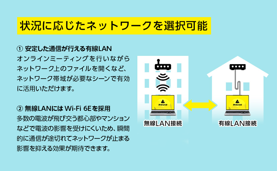 ※Wi-Fi 6Eを使用するには、Windows 11とWi-Fi 6E対応機器が必要です