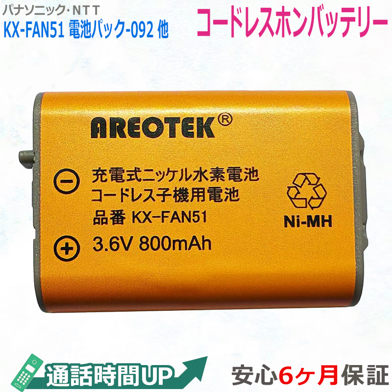 PANASONIC コードレスホン子機用電池パック KX-FAN51 HHR-T407 NTT電池パック-092 TSA-124 TEL-B2078H 【純正品と完全互換 】
