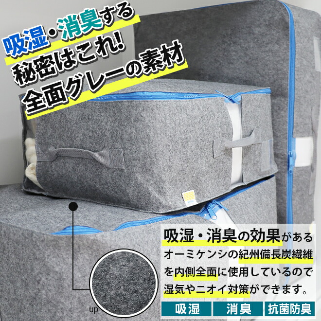 紀州備長炭繊維の吸湿&消臭力で優しく収納。嬉しい抗菌防臭付き!