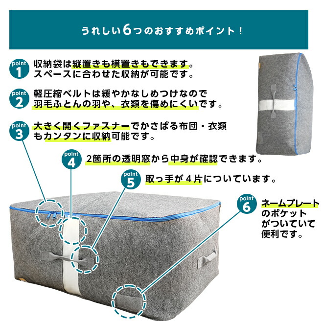 布団や衣類など、かさばるものを優しく簡単に軽圧縮でスッキリ収納!