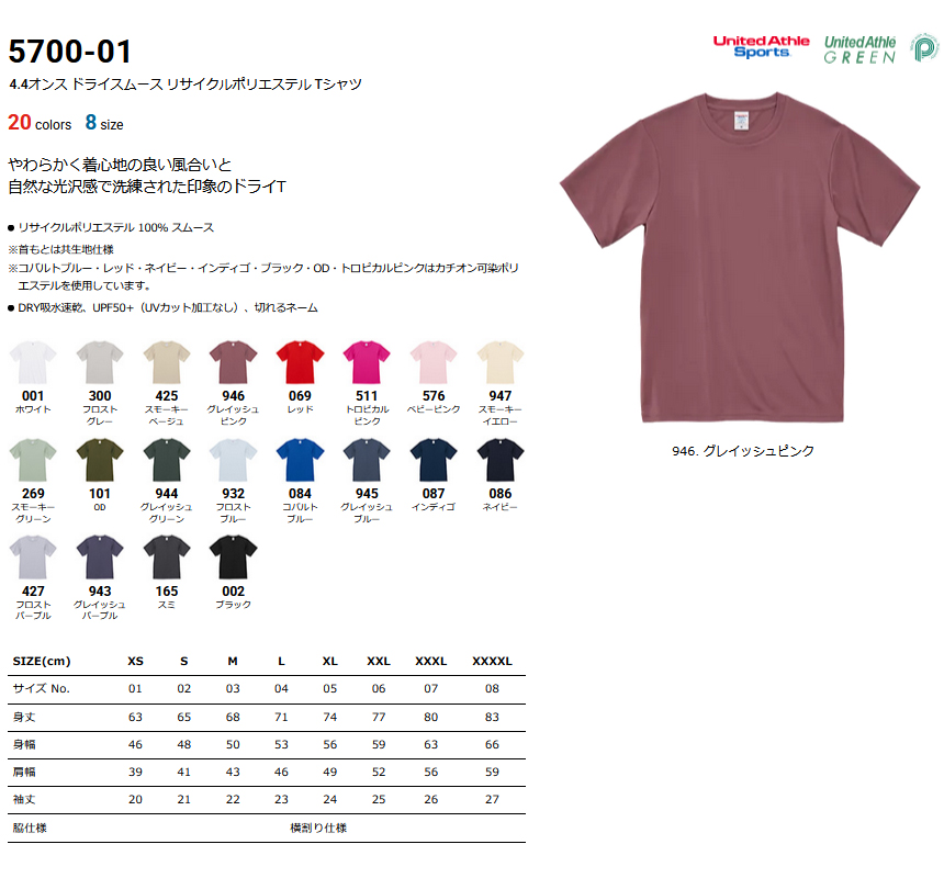 Tシャツ ドライ メンズ 半袖 無地 UnitedAthle ユナイテッドアスレ 4.4オンス ドライスムースリサイクルポリエステルTシャツ 吸汗速乾 スポーツ 5700-01 通販M15