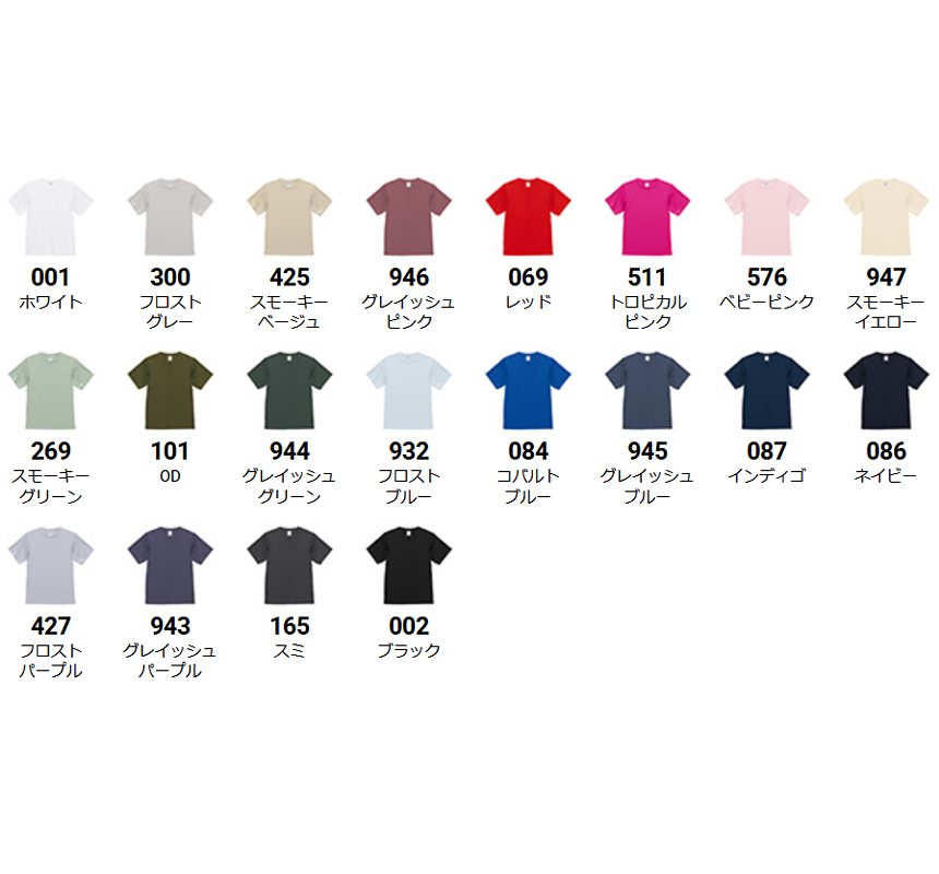 ※コバルトブルー・レッド・ネイビー・インディゴ・ブラック・OD・トロピカルピンクはカチオン可染ポリエステルを使用しています。