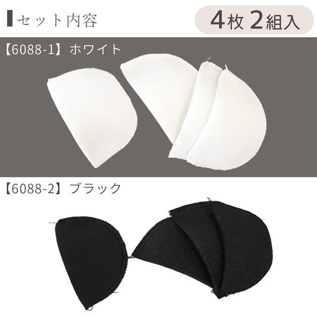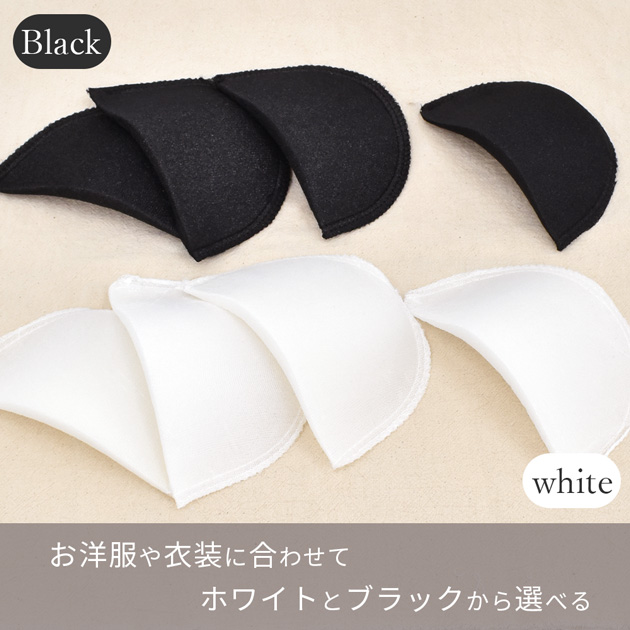 肩パット 4枚 2組入り 白 黒 厚み 約10〜12mm 全2色 おしゃれ ■ パッド インナー ジャケット ドレス 発表会 ブラウス 衣装 肩幅 サポート 保護 手作り ■