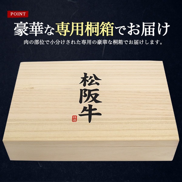 肉の部位で小分けされた専用の豪華な桐箱でお届けします。