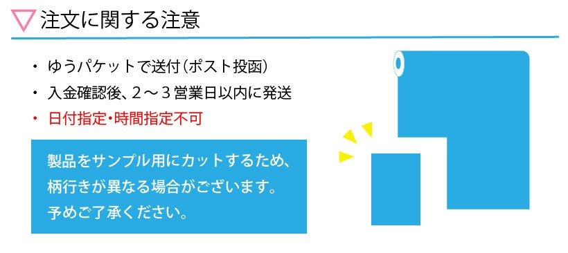 サンプルはゆうパケット(ポスト投函)で発送致します。