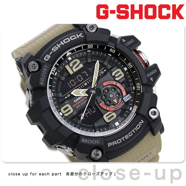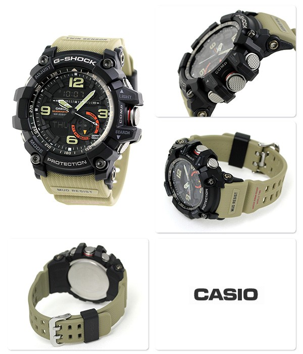 7年保証キャンペーン カシオ Gショック マッドマスター クオーツ メンズ 腕時計 GG-1000-1A5DR CASIO G-SHOCK MUDMASTER アナデジ ブラック×カーキ ◆瓦礫や土砂が山積・散乱するような極限の陸上での使用を想定したマスターオブGシリーズ「MUDMASTER(マッドマスター)」から、防塵・防泥構造を備え、ツインセンサーを搭載したモデルが登場。救難現場など過酷な状況下においても、感覚的に方位計測・温度計測できる操作性にこだわったモデルです。細かい砂や泥の進入を防ぐ、ボタンガードシリンダー構造を採用。シリンダー状のパイプはボタンが受ける衝撃の緩和や操作性を高める構造に。幅広の時分針、2・3・6・9時位置のインデックスは大きくし、視認性抜群。モード表示部分にはスプロケットをモチーフにしたディスク針使用。滑り止めをイメージしたテクスチャーを施したバンド。ミリタリーテイスト溢れるデザインとカラーで、男らしい手元に。 国内モデル品番:GG-1000-1A5JF