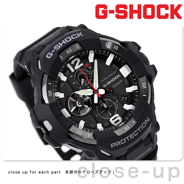 7年保証キャンペーン gショック ジーショック CASIO G-SHOCK マスターオブG エア グラビティマスター ソーラー Bluetooth ソーラー メンズ 腕時計 GR-B300-1ADR MASTER OF G - AIR GRAVITYMASTER アナログ ブラック ◆過酷な環境下で活動するプロフェッショナルに向けたG-SHOCK MASTER OF Gシリーズから、航空機やパイロットの世界観を演出したGRAVITYMASTER GR-B300です。耐衝撃構造の「カーボンコアガード構造」を採用。カーボン繊維強化樹脂を用いたケースと次世代航空機から着想を得たシームレスなベゼルを組み合わせて力強いフォルムを実現しました。ホームタイム時刻入替機能やデュアルタイム機能を搭載し、海外渡航時などに役立ちます。大型で立体的な時字とワイドフェイスを強調する金属ベゼルで視認性や機能性を向上。また、9時側のディスク針にデュアルコイルモーターを採用することで針の動きや機能美を追求しています。 国内モデル品番:GR-B300-1AJF
