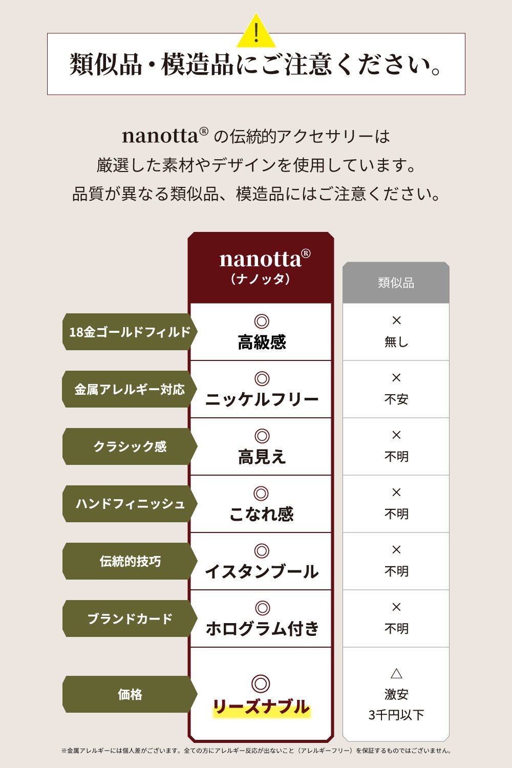 ※こちらはニッケルフリーでお作りしており、金属アレルギーに優しい(アレルギーフリー アレルギー対応 ジュエリー)になりますが、アレルギーには様々な原因があり個人差がございます。体質によっては、かゆみ・かぶれ等を生じる場合もございますので、皮膚に異常を感じた時はご使用をお止め頂き専門医にご相談下さい。