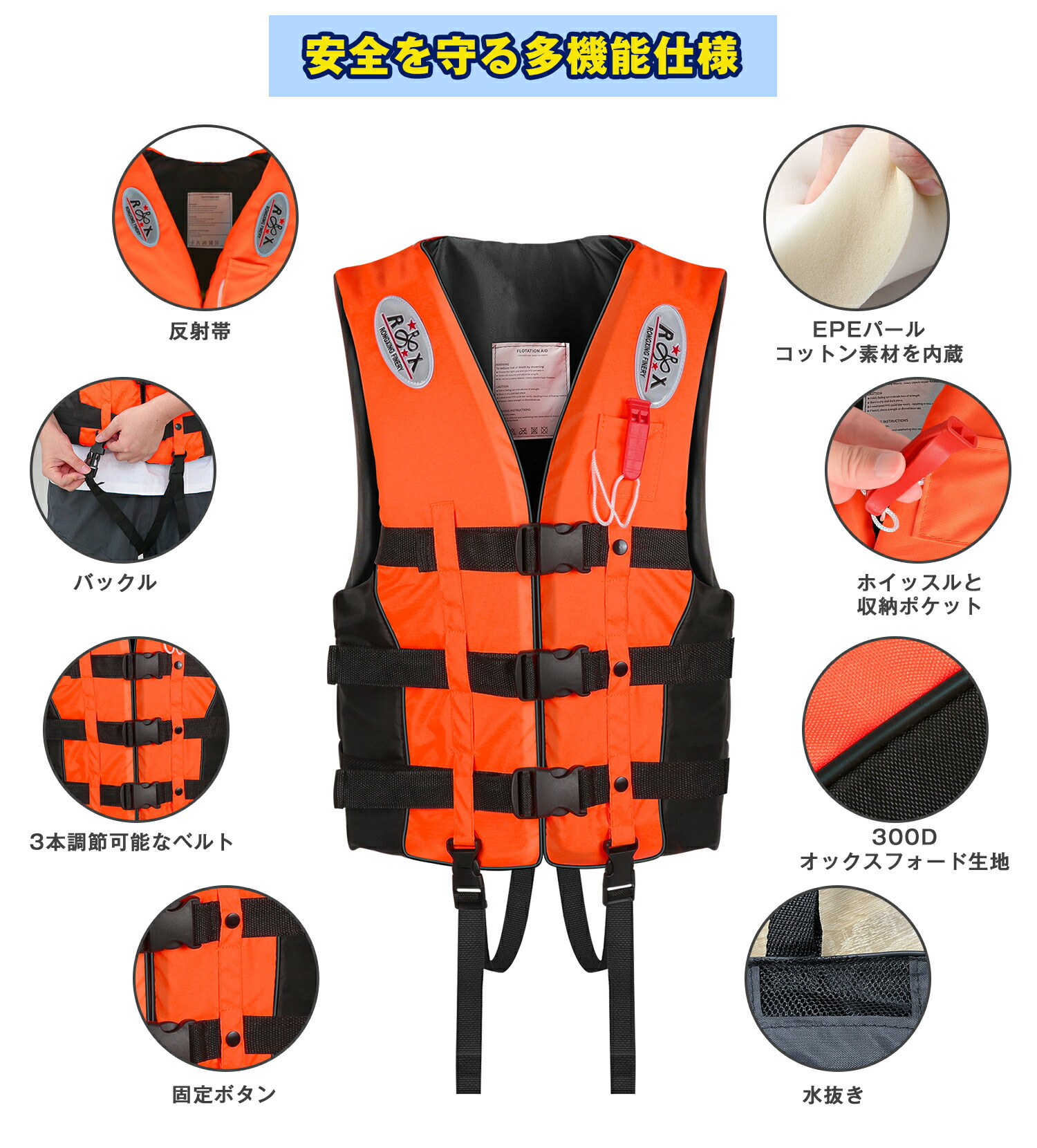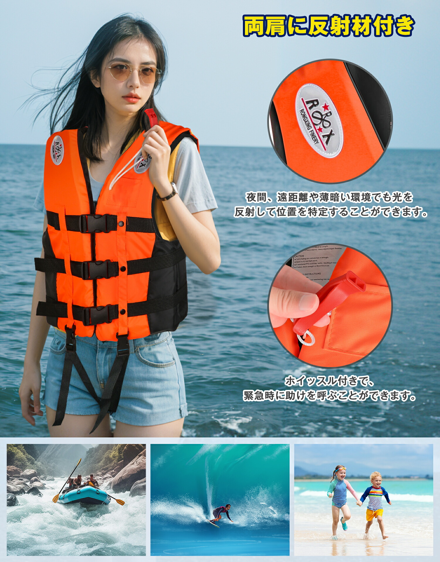 ライフジャケット ベスト シュノーケリングベスト 救命胴衣 大きいサイズ 笛付き 反射材 CE認証済 子供用 大人用 カヤック 水泳 海水浴 釣り 防災