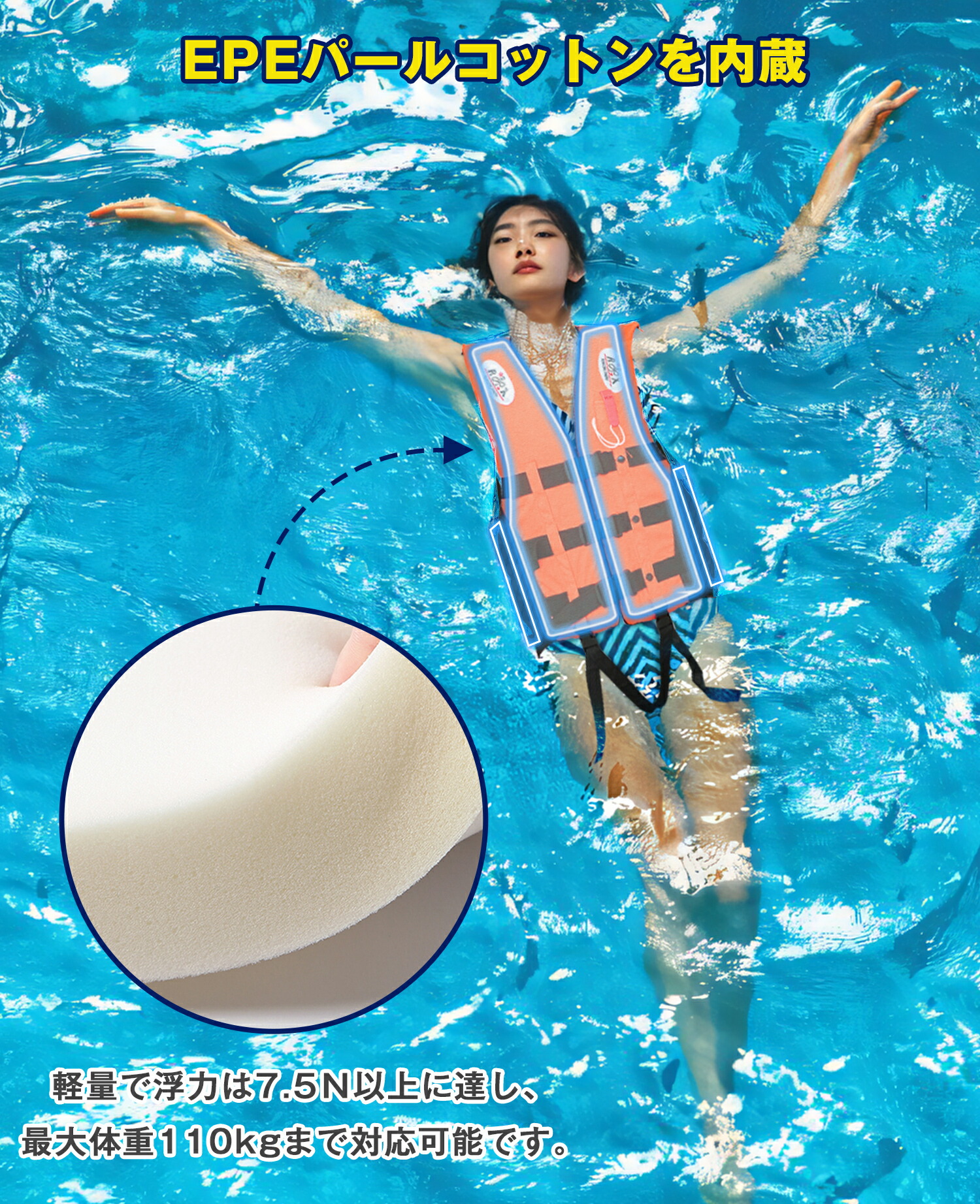 防水性と浮力に優れている素材を採用し、ライフジャケットの安全性を向上させます。軽量で体にフィットするので、水害、浸水、津波などの災害時だけでなく、日常の釣り、サーフィン、カヤック、漂流、水上作業にも適しています。