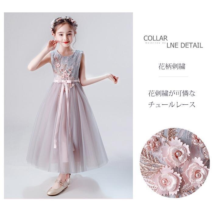 ポイント消化 子供ドレス ピアノ発表会 ドレス チュールドレス 花柄 刺繍 女の子ドレス 結婚式 演奏会 子供 キッズ 110 12