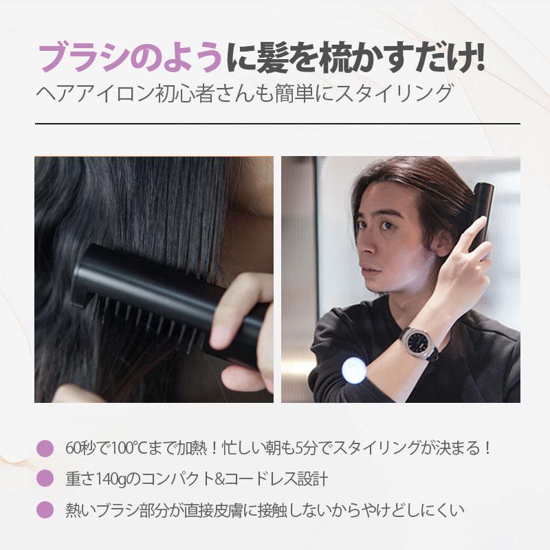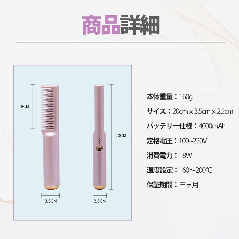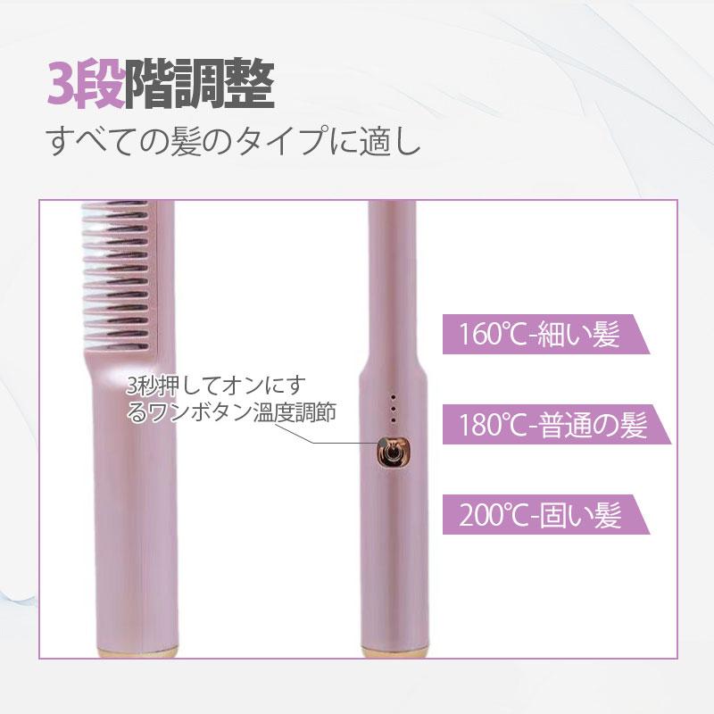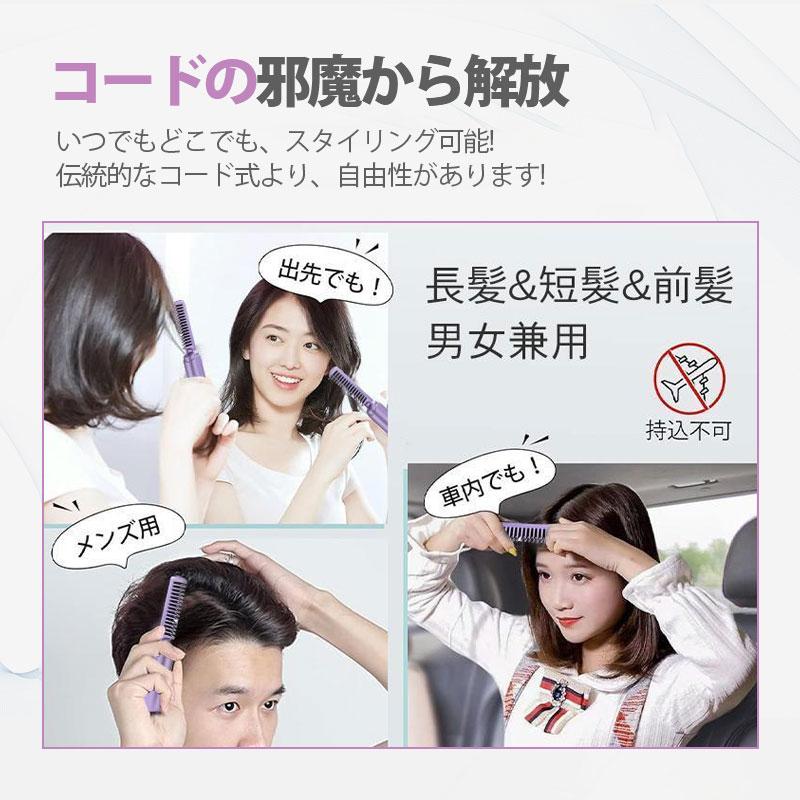 只今底値!ヘアアイロン コードレス 2way 急速加熱 ミニ ストレートアイロン くし カール USB ヘアケア 持ち運び 軽い 充電式 アイロンブラシ コンパクト