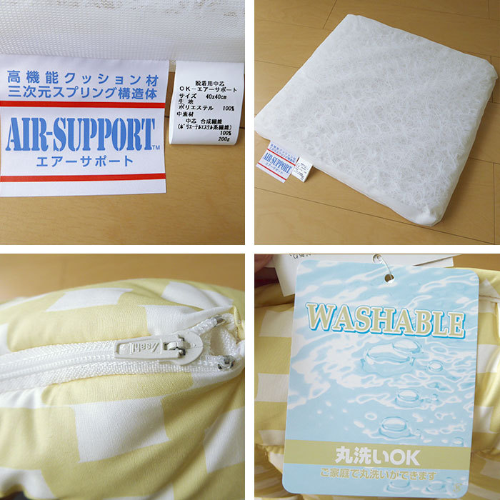 送料無料 日本製 洗えるエアーサポートクッション 45×45cm 厚み約8cm ダクロン中わた 座布団 椅子用 正座用 ドライブ用 来客用 腰痛対策 お家で洗える ウォッシャブル 体圧分散 父の日 母の日 敬老の日 ギフト 贈り物 OK-エアーサポート