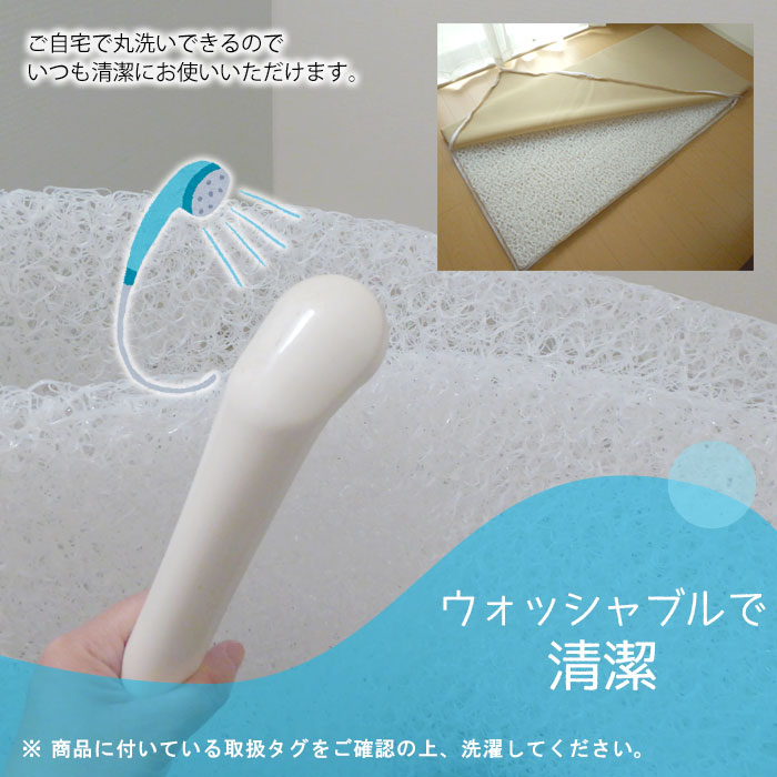 浴槽で簡単に水洗いができ、水切り性、速乾性も高くクリーンで衛生的です。