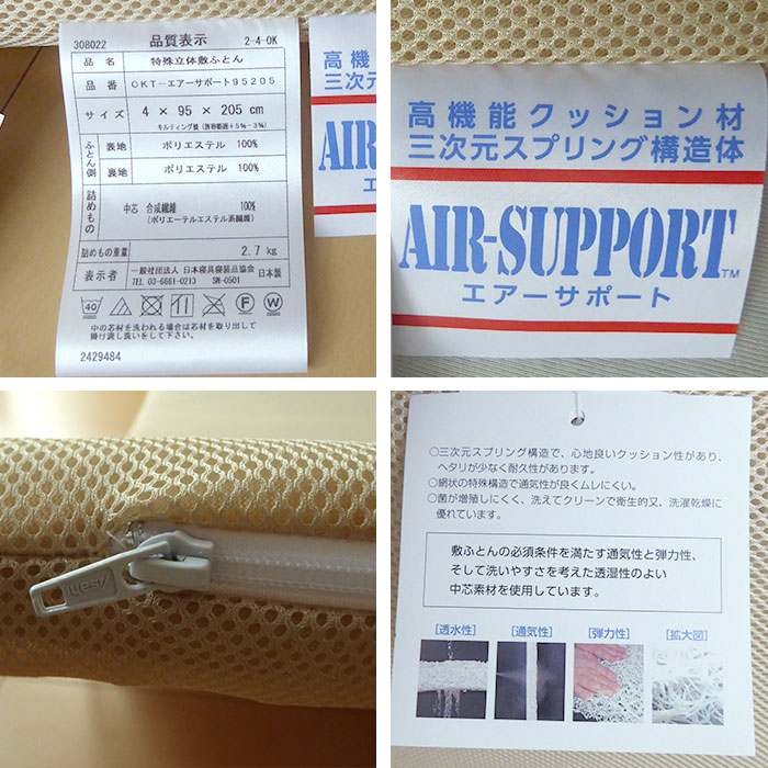 ●品名:エアーサポート 特殊立体敷布団(側生地外せるタイプ)