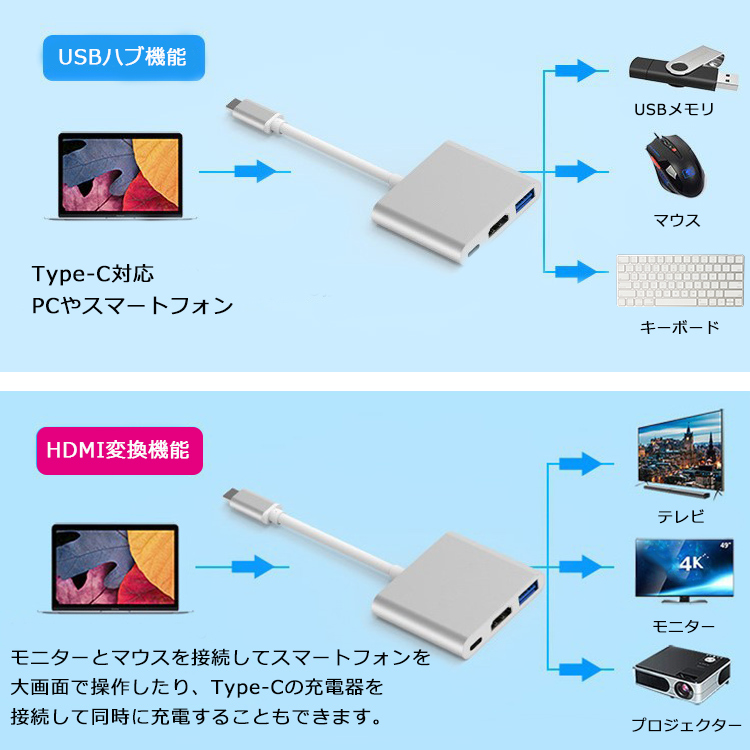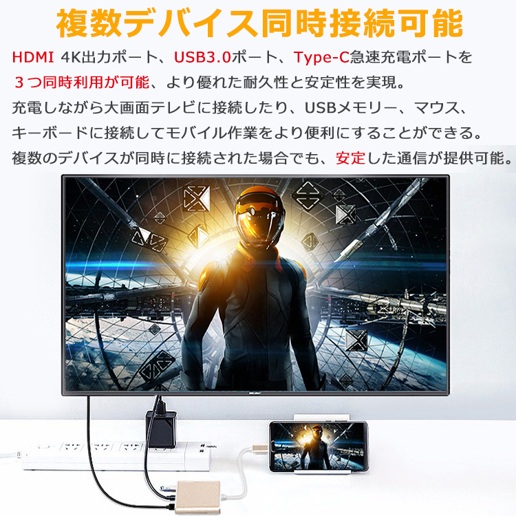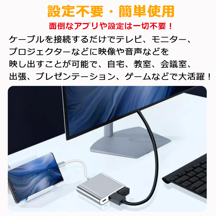 【Type-C HDMI変換アダプター】iPhone HDMI 変換アダプタ 変換ケーブル iPhone17 HDMIケーブル ミラーリング USB 変換 iPad Android Switch スマホ テレビ 接続