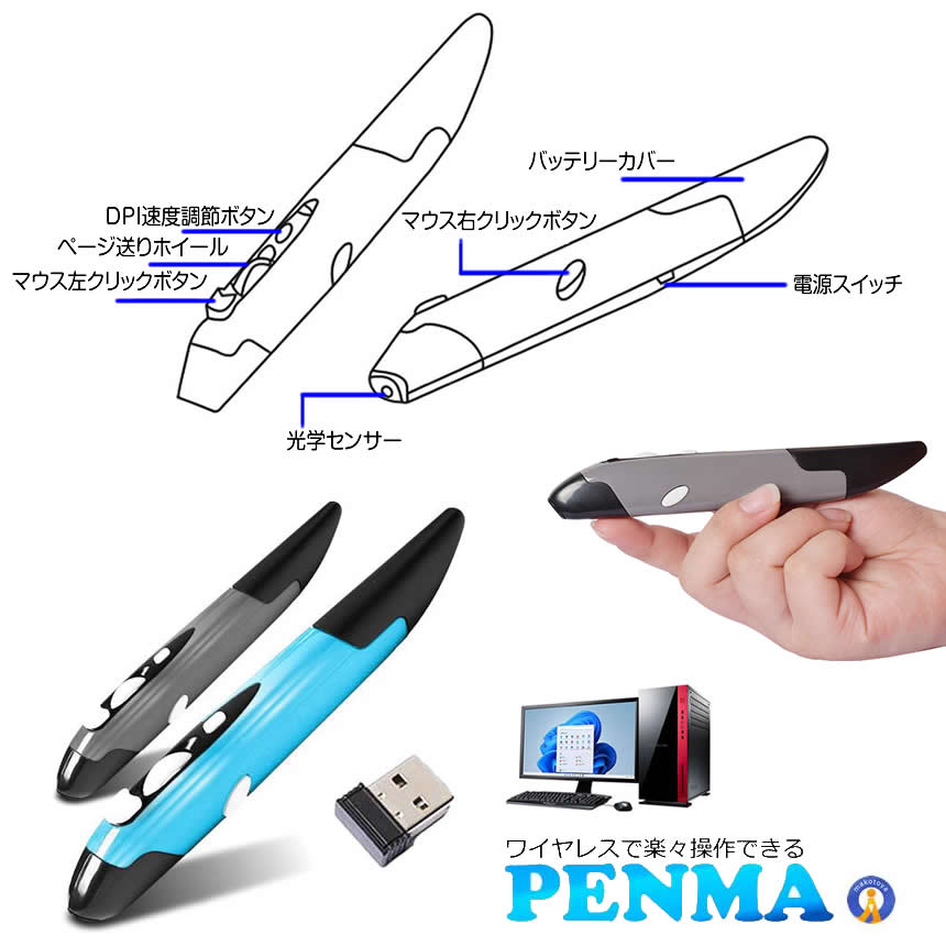 マウス操作ができるワイヤレスのペンマウス