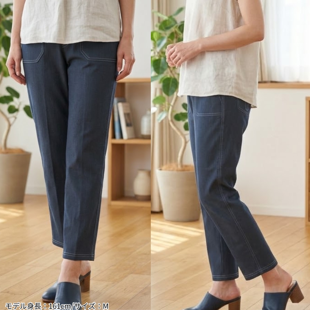 裾上げの手間がなく、届いたその日からすぐ着用できます。