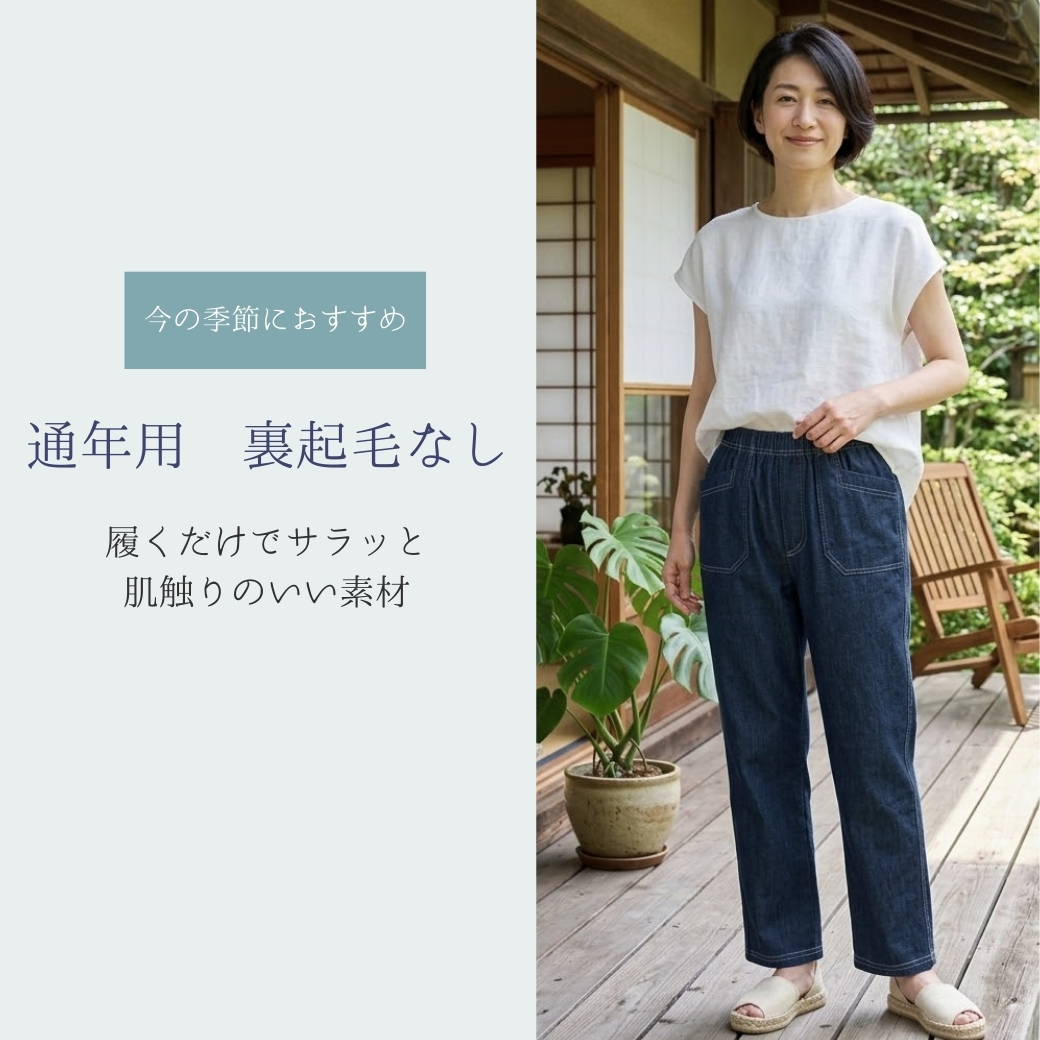 春夏にちょうどいい軽やかなニットデニムパンツです。
