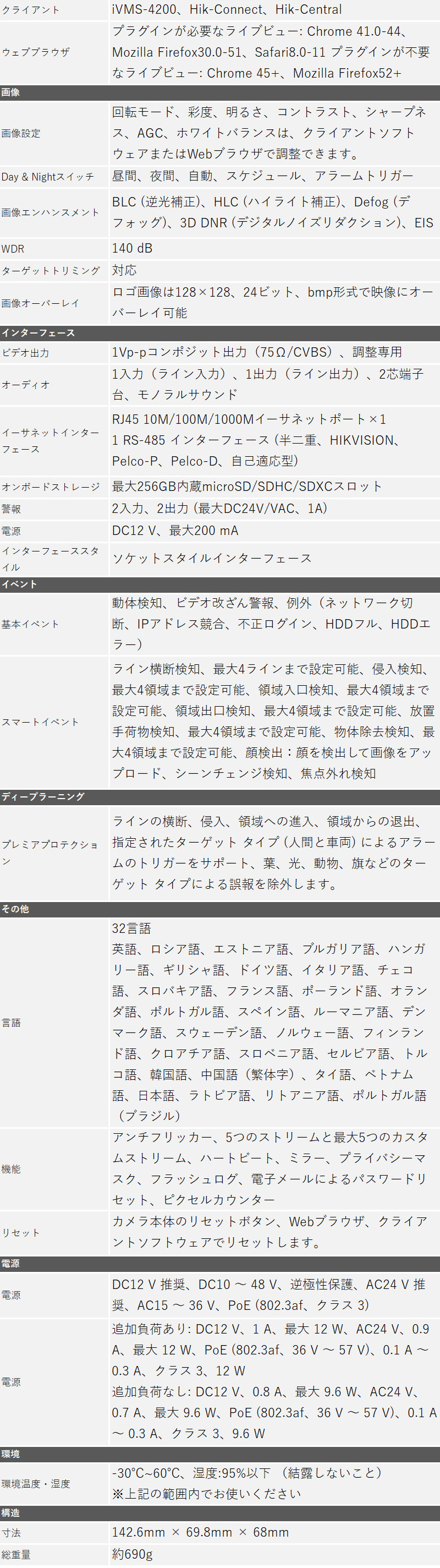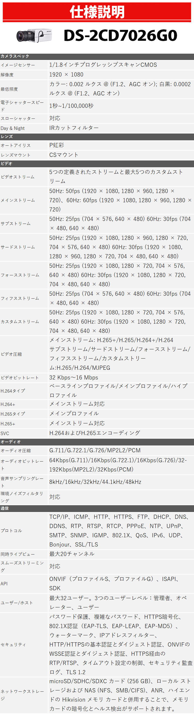 防犯カメラ HIKVISION(ハイクビジョン) 屋内 家庭用 顔検出 動体検知 IP 243万画素 PoE バレット型 DS-2CD7026G0