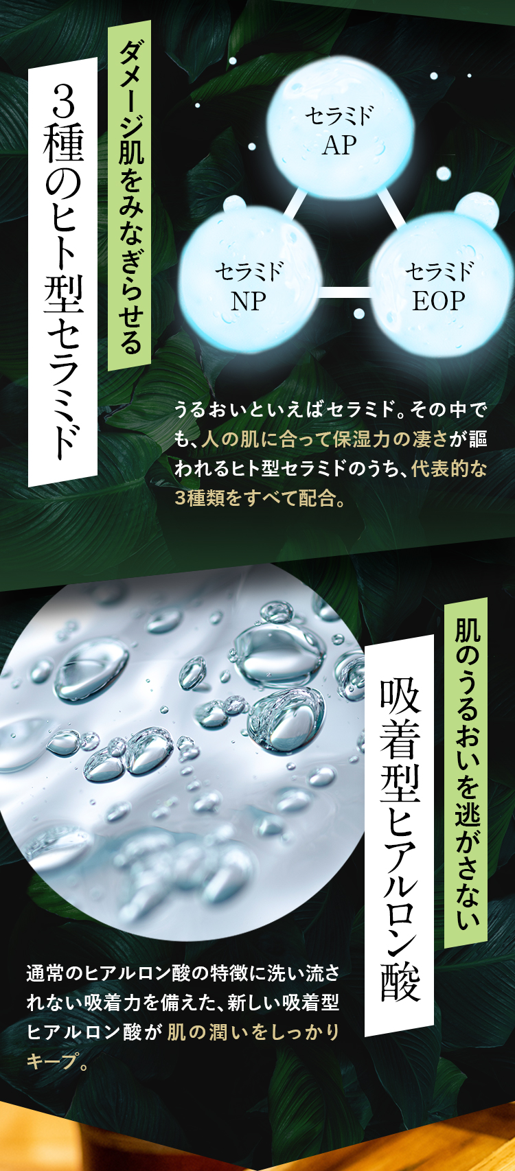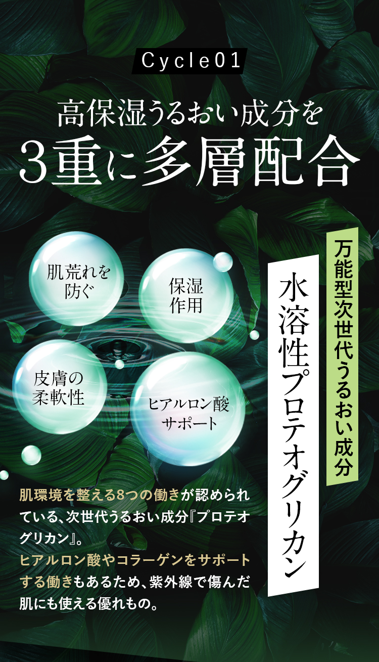 ヒト型セラミド3種 吸着型ヒアルロン酸 プロテオグリカン 善玉フローラ 天然温泉水等 成分をギュッと凝縮