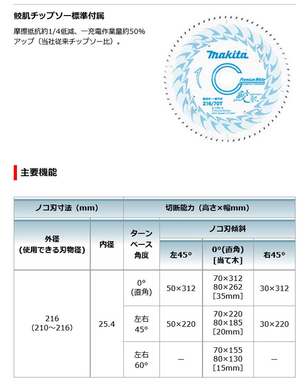 マキタ LS005GZ 充電式スライドマルノコ 216mm[無線連動対応]40Vmax 本体のみ 鮫肌チップソー付(バッテリ・充電器別売)