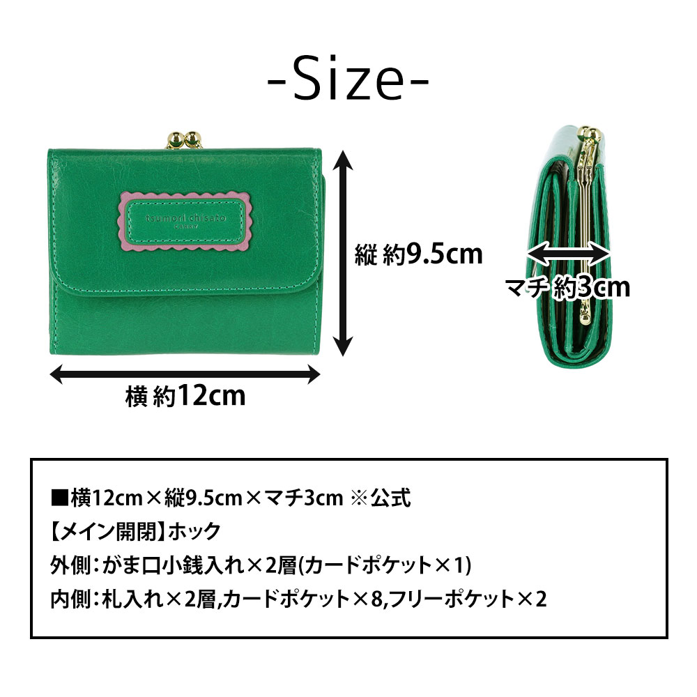 女性に人気のがま口デザインの小銭入れを採用。ゴールドカラーの金具で、より高級感を高めています。
