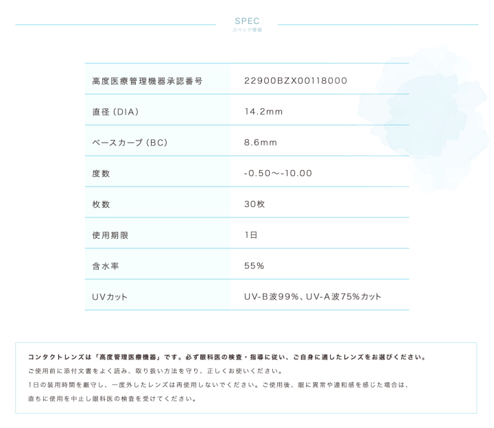 度数範囲 -0.50D〜-6.00D (0.25Dステップ)