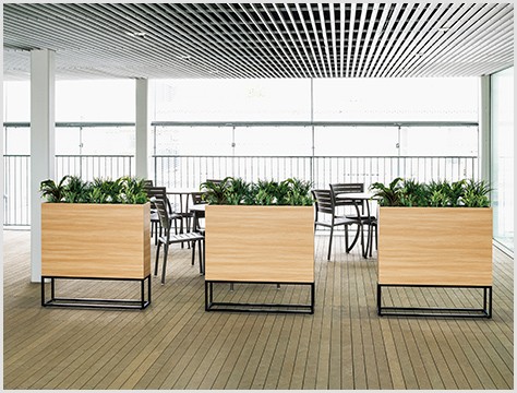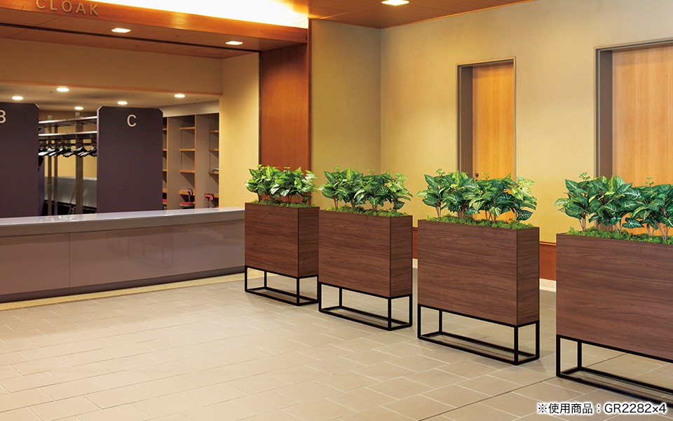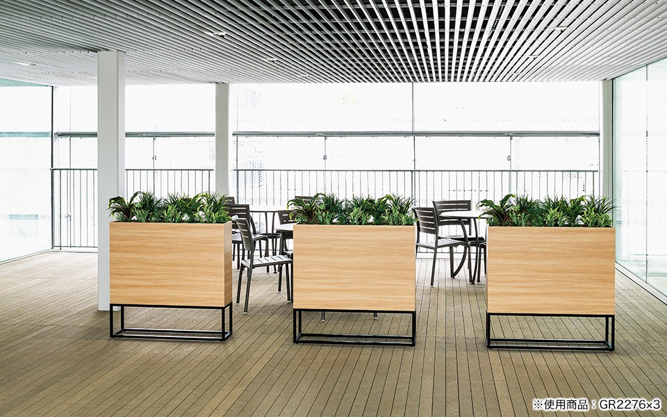 フードコートや食堂の通路、テーブルの仕切りやオフィスのロビー、ワークスペースと打ち合せスペースの仕切りなど、多くの場所でお使いいただけます。人工グリーンなのでお手入れ不要、手軽で衛生的です。