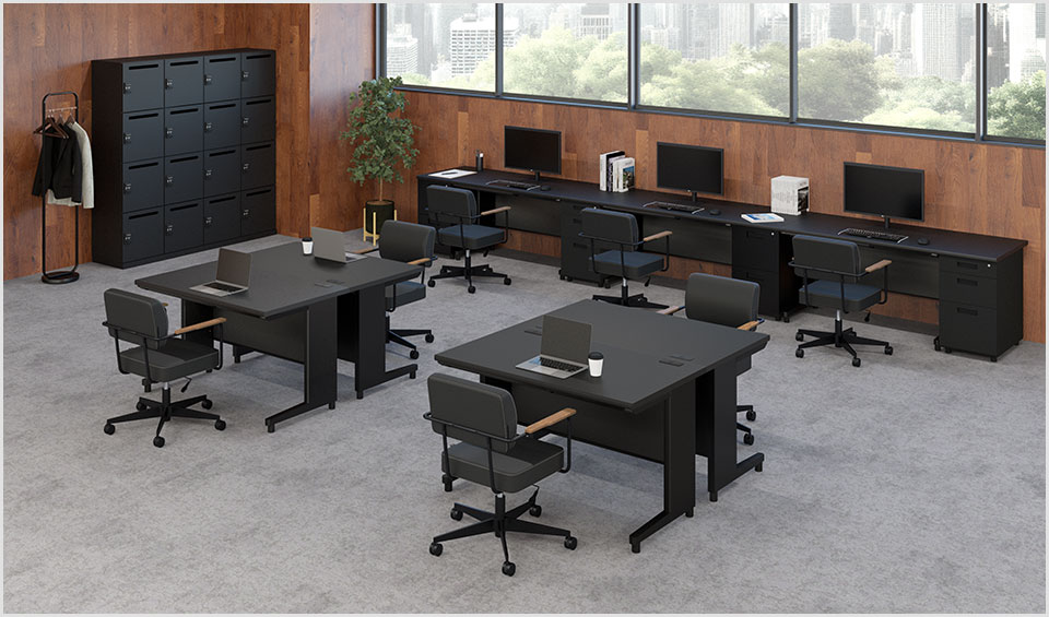 ダークトーンで統一したデザインは、スタイリッシュなオフィスやモダンな雰囲気のワークスペースなど、人々が自然と働きたくなる空間づくりにもぴったり。落ち着いた色合いと無駄のないシンプルなデザインが、業務に集中しやすい環境を整え、1人1人の働く意識や意欲もおのずと高まります。