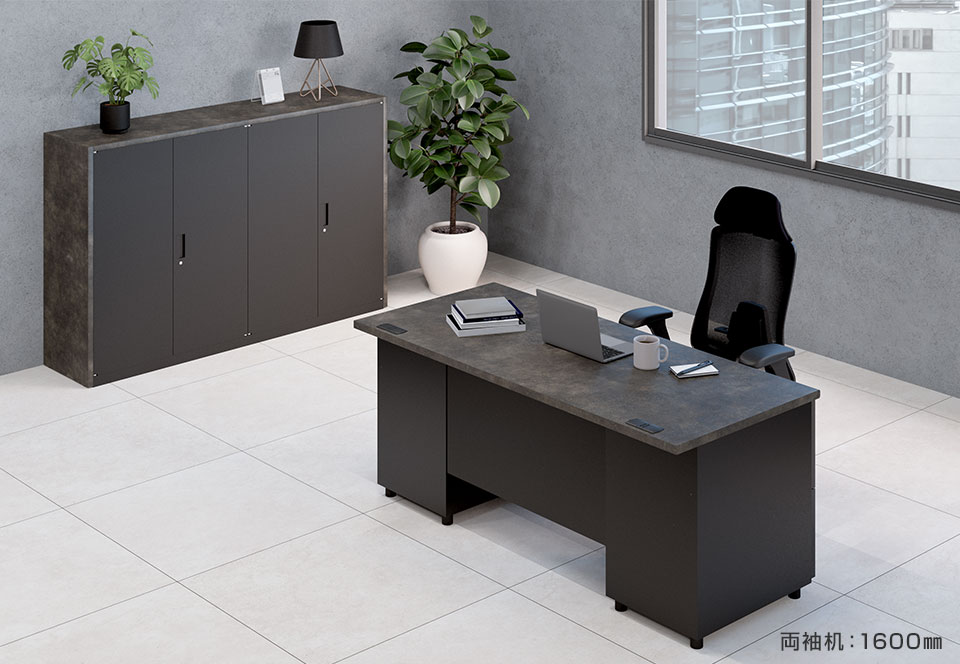ワンランク上のオフィス空間を演出。シックで頑丈なスチール製の両袖机/幅1600mm
