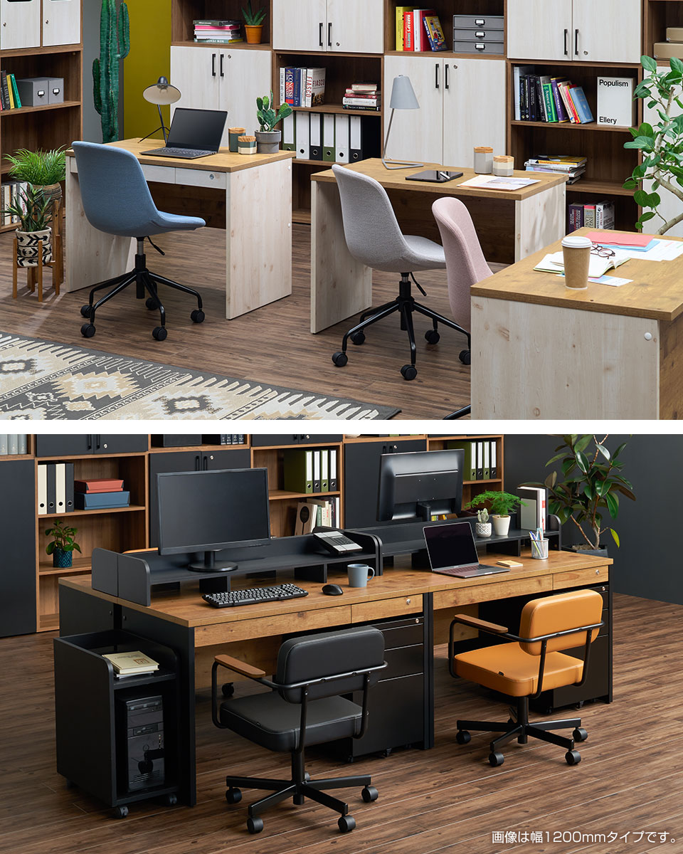 作業スペースを拡張できる脇机、デスク上を有効活用できる机上ラックなど、同シリーズのアイテムと組み合わせることで収納力や利便性がより向上します。