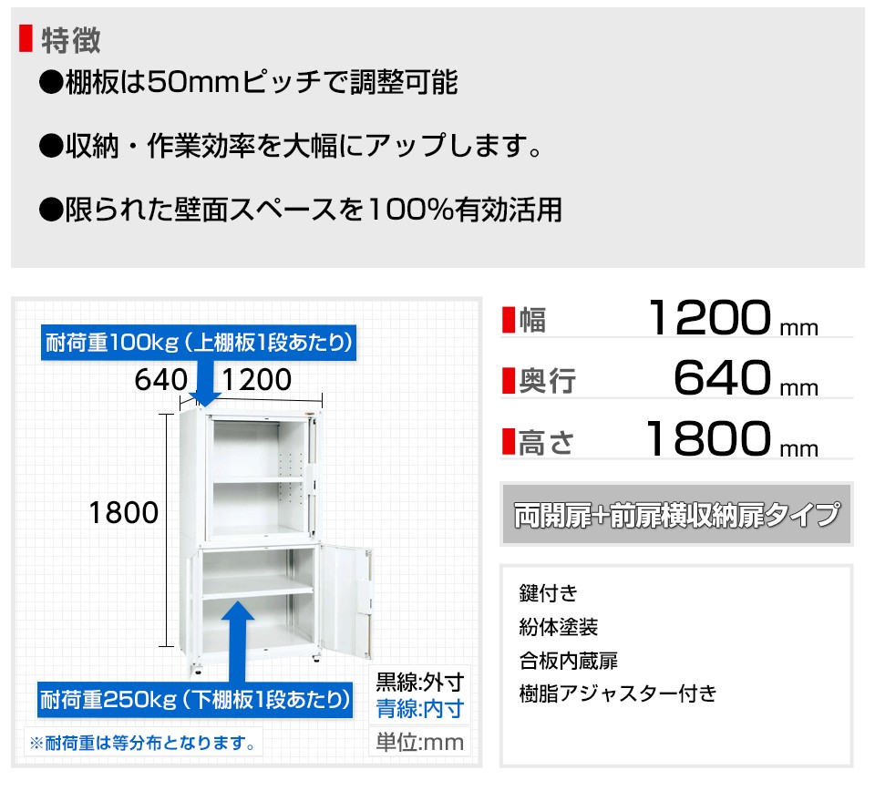 幅1200×奥行640×高さ1800mm