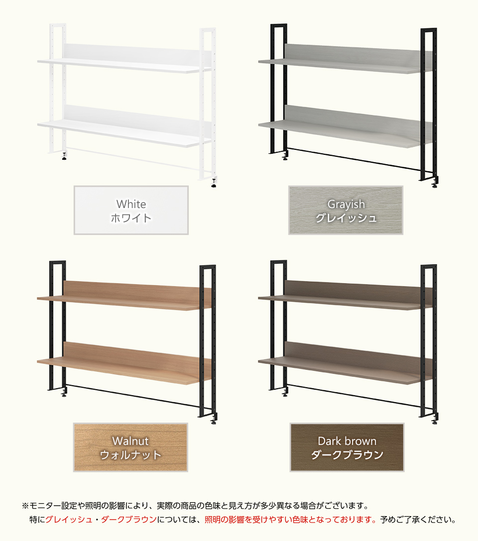 2段とも18段階高さ調節ができるので、お好みの位置に調整可能。全段収納に使用したり、下段にはPCモニターを設置したりと、活用の幅が広がります。