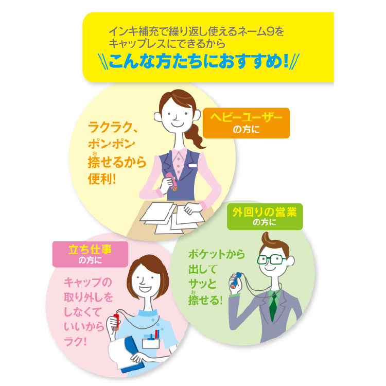 お手持ちのネーム9をキャップレスタイプのネーム印にチェンジできる