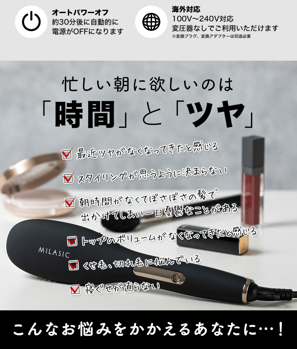 ヘア/スタイリング/ストレート/簡単/高温/プロ/プロ仕様/ヒートブラシ/ブラシ/ストレートブラシ/ストレートヘアブラシ/ヘアスタイリング/ロング/ロングヘア/セミロング/ボブ/ショート/ナチュラルヘア/美容/美容院/ヘアメイク/ツヤ髪/髪/マイナスイオン/海外対応/保証/優良配送/送料無料