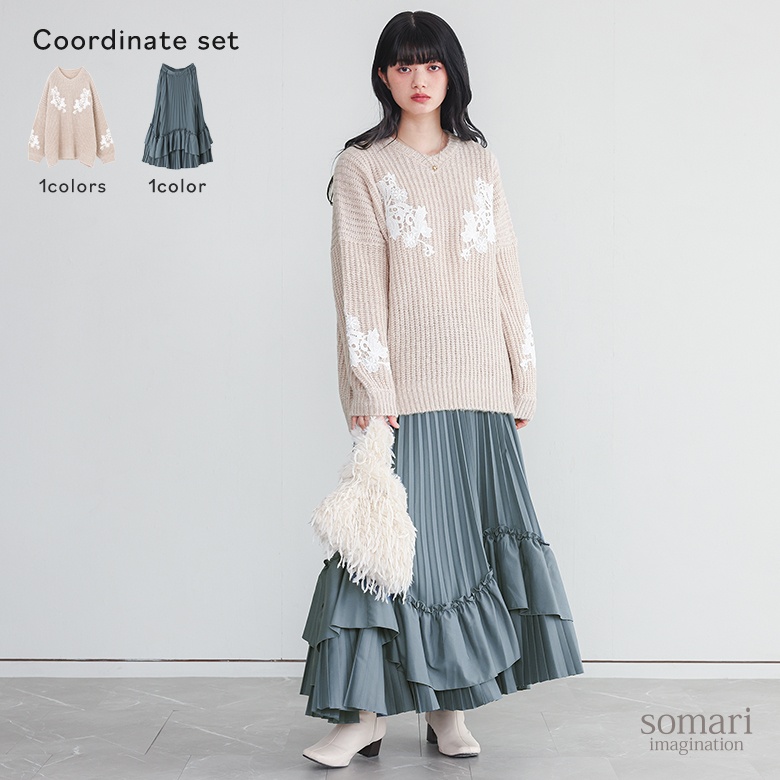 2点コーデセット 2025 レディース ニット 長袖 トップス セーター Vネック スカート ロング丈 ボトムス「送料無料」「メール便不可」「80」