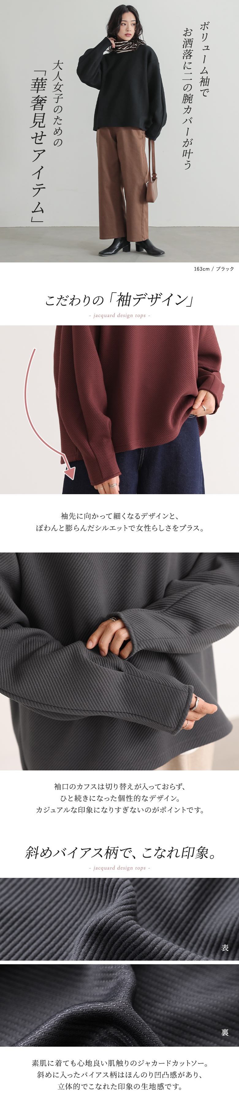 こだわりシルエットのボリュームスリーブジャカードカットソー。