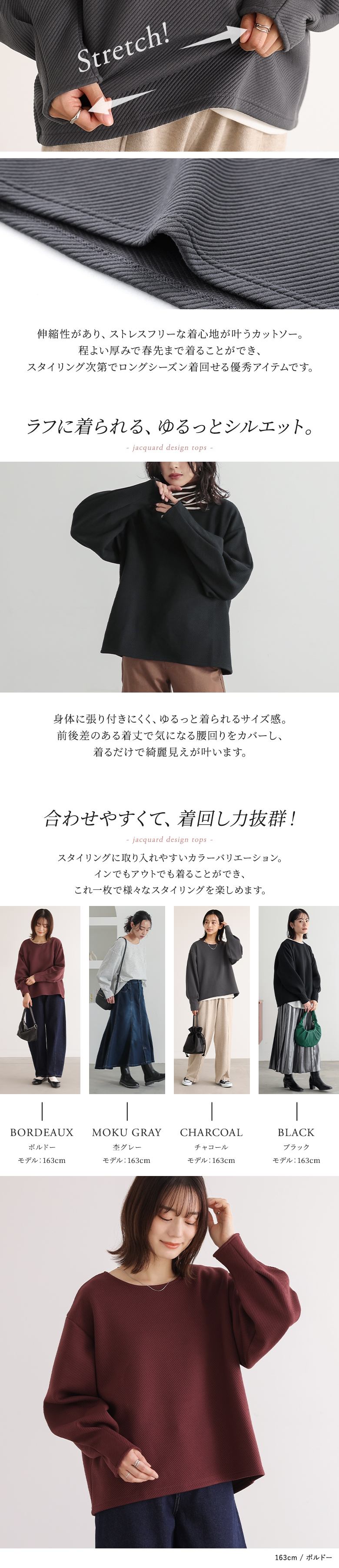 カットソー 長袖 レディース トップス ロンT ボリューム袖 ジャカード ジャガード チュニック バイアス柄 レイヤード 重ね着 【TP】 トレーナー スウェット スエット プルオーバー ジャカードカットソー クルーネック ボートネック n'OrLABEL ノア―ルレーベル 大人女子 大人可愛い お洒落可愛い 大人カジュアル ベーシック ニュアンス ラフ オフィスカジュアル ぽわん袖 袖コンシャス ドロップショルダー タック 無地 おうちで洗える 伸縮性 秋 冬 カジュアル シンプル ナチュラル モード キレカジ フェミニン 上品 きれいめ Sサイズ Mサイズ Lサイズ LLサイズ 3Lサイズ XLサイズ フリーサイズ ぽっちゃり 体型カバー 大きいサイズ プラスサイズ 10代 20代 30代 40代 50代 60代 女子会 オフィス 通勤 通学 お買い物 お出掛け 旅行 リゾート レジャー おしゃれ お洒落 トレンド 流行 osharewalker オシャレウォーカー おしゃれうぉーかー レッド 赤 ボルドー グレー 灰色 杢グレー チャコールグレー チャコール ブラック 黒 【ow_en】[ID]14tm0mq[n'OrLABELボリュームスリーブジャカードカットソー]