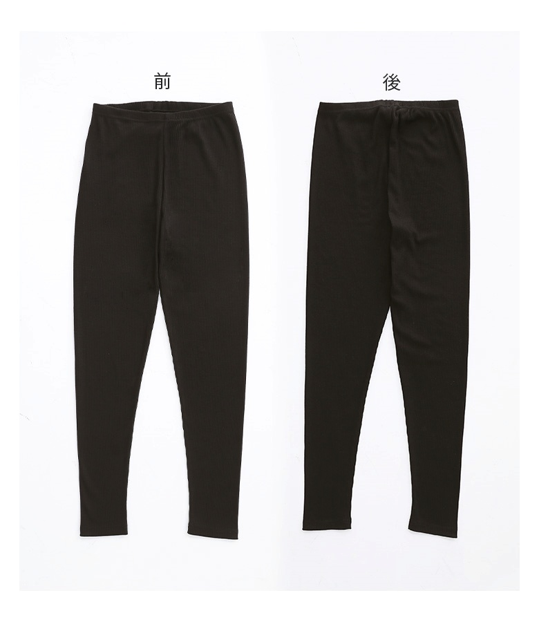 シンプルなデザインで着回しに活躍するリブレギンス。しっかりとヒップ回りを包み込んでくれる、安心の股上が深めのシルエットです。ウエストはゴム仕様で快適な穿き心地。