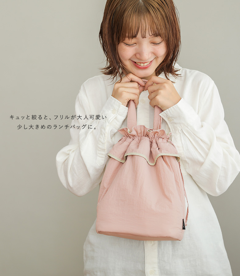 ランチバッグ 巾着 おしゃれ お弁当 お弁当袋 ランチトート 大きめ マチ広 バッグ トート トートバッグ お弁当入れ 縦型 シンプル アルミ かわいい レディース お弁当バッグ 手提げ 軽量 フリル 無地 サブバッグ ランチグッズ 女子 ランチ 巾着型 2way ポケット 軽い 手洗い ピンク グレー ベージュ 配色 バイカラー 大人かわいい アルミコーティング メッシュポケット 持ち手付き パイピング くすみピンク ペールピンク 灰色 ライトグレー ペールカラー スモーキーカラー ニュアンスカラー ランチタイム 【TP】 フェミニン ナチュラル ライフスタイル雑貨 プレゼント 贈り物 ギフト プチギフト 差し入れ 生活雑貨 キッチン雑貨 通勤 通学 お買い物 お出掛け 旅行 リゾート レジャー アウトドア キャンプ ピクニック オールシーズン[ID]25zm08q[sucreランチバッグ]