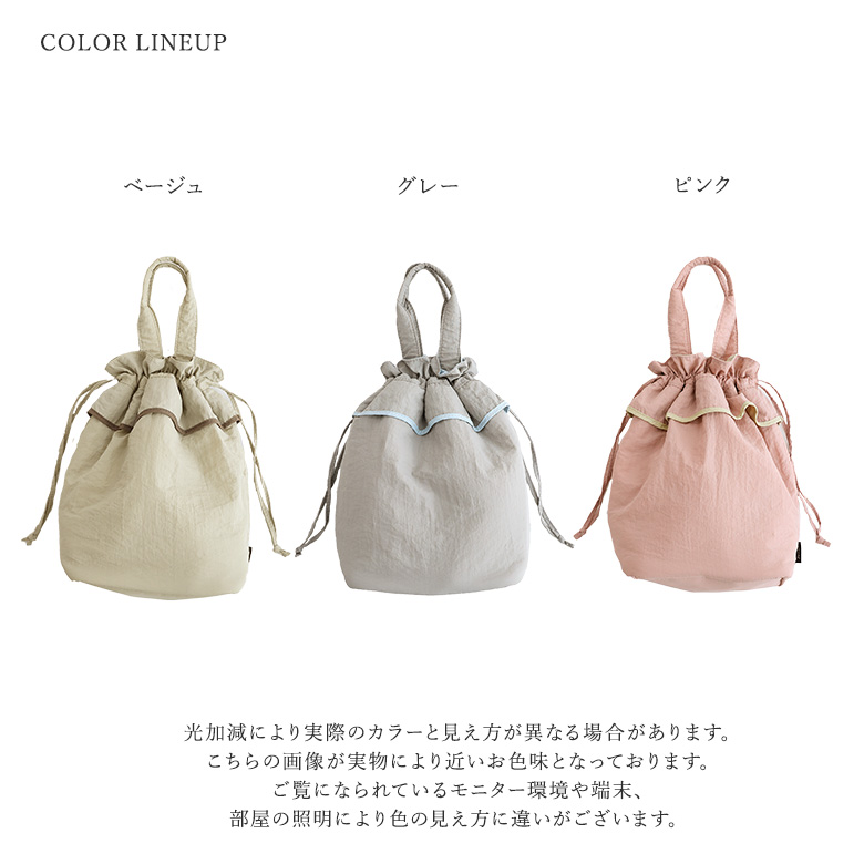 ランチ 巾着型 2way ポケット ピンク グレー ベージュ 配色