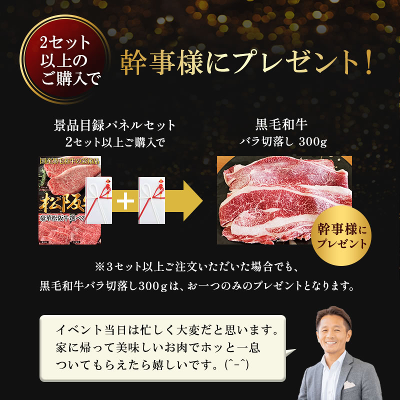 ■目録パネルセットを同時に2セット以上購入されますと黒毛和牛切り落とし300g(冷凍)をプレゼント致します。