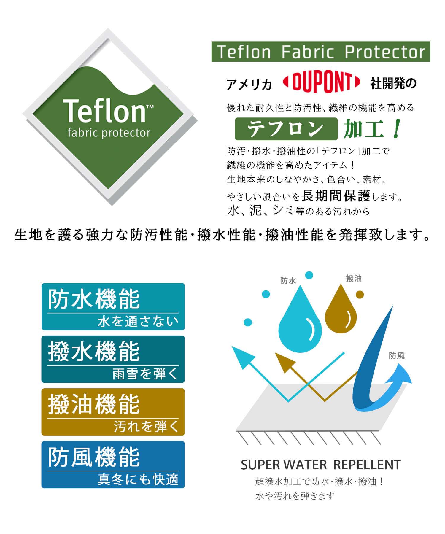 表:ポリエステル92%、ポリウレタン8%(テフロン加工)